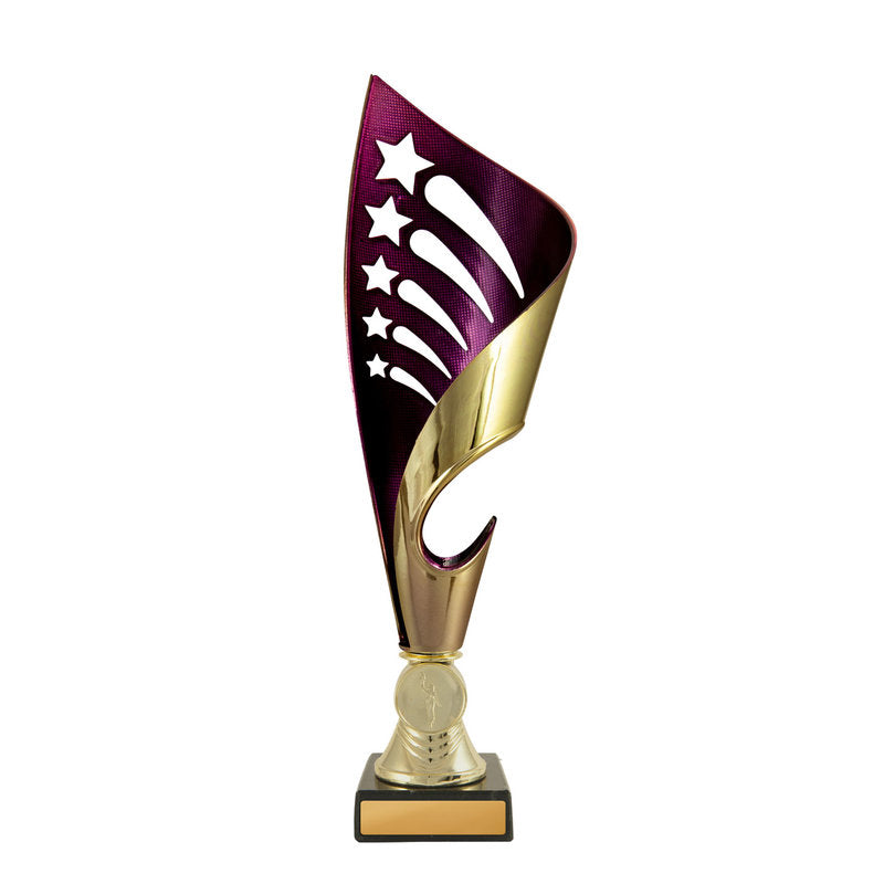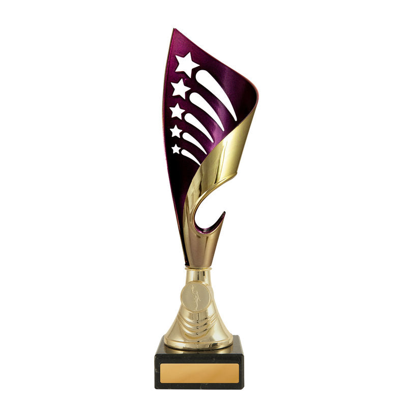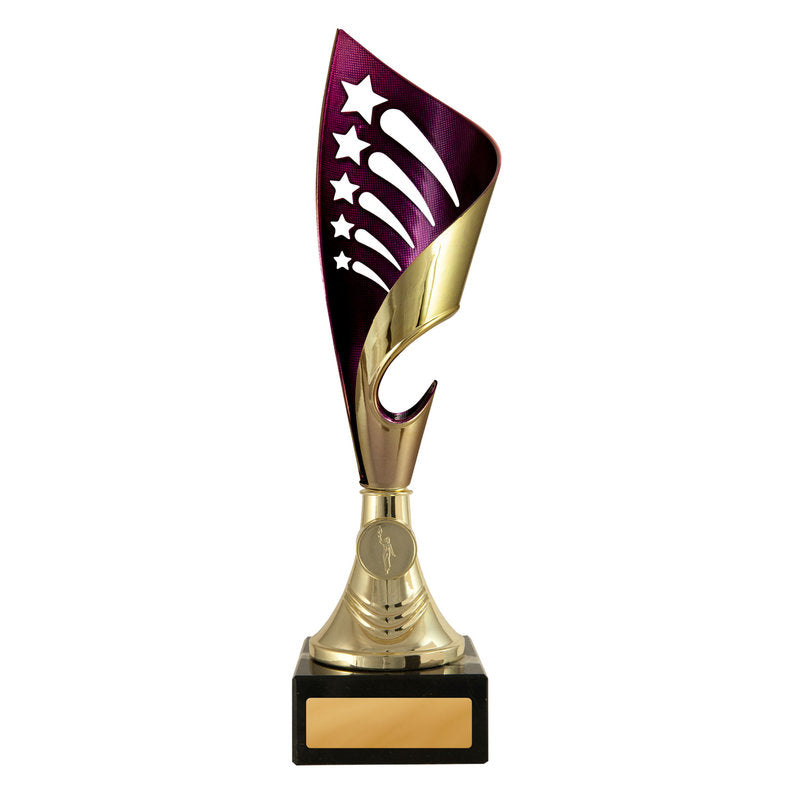 This award is part of the 2025 Evaton Range, exclusively at Brighton Trophy Centre. Colour: Gold-Purple. Material: Plastic-Marble. Height: 305.0mm. Perfect for celebrating achievements in Plastic Cups events. Engraving available – contact us to personalise your award.