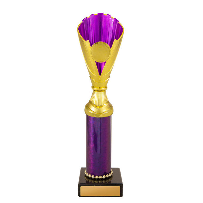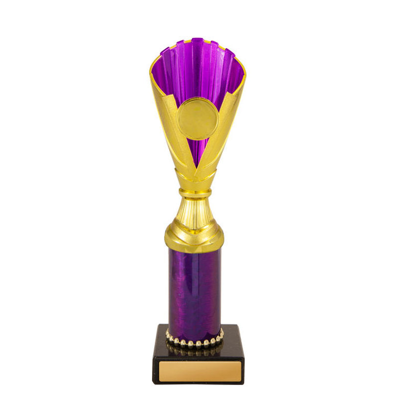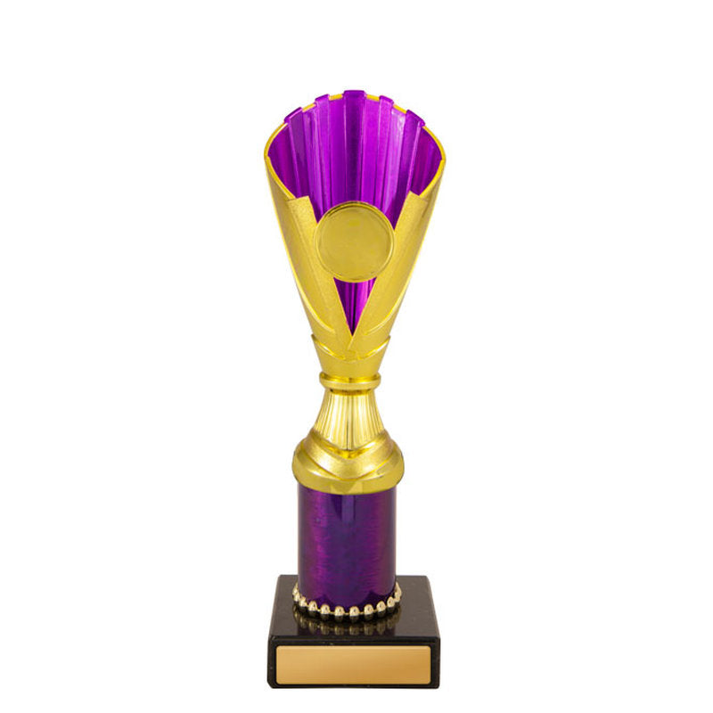 This award is part of the 2025 Evaton Range, exclusively at Brighton Trophy Centre. Colour: Gold-Purple. Material: Plastic-Marble. Centre Holder: 25. Height: 170.0mm. Perfect for celebrating achievements in Plastic Cups events. Engraving available – contact us to personalise your award.