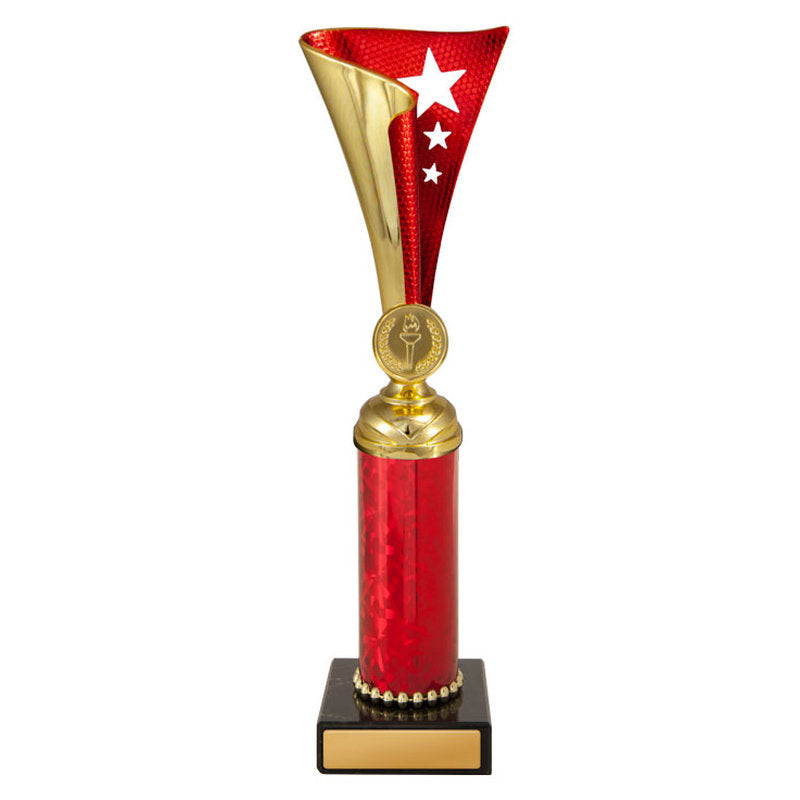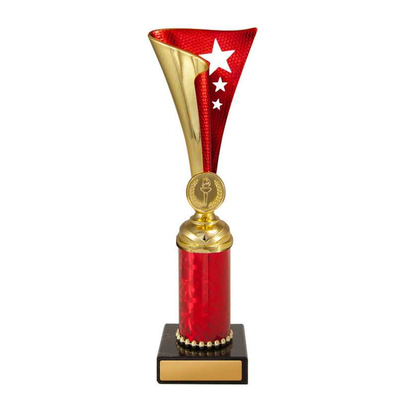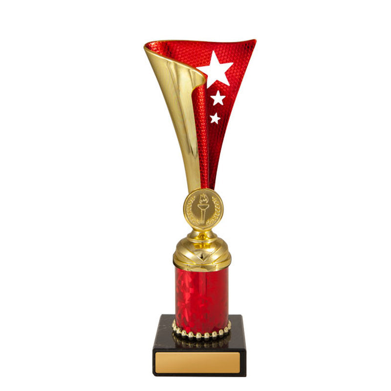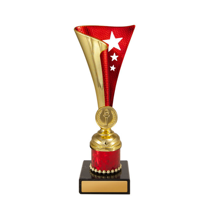 This award is part of the 2025 Evaton Range, exclusively at Brighton Trophy Centre. Colour: Gold-Red. Material: Plastic-Marble. Centre Holder: 25. Height: 172.0mm. Perfect for celebrating achievements in Plastic Cups events. Engraving available – contact us to personalise your award.
