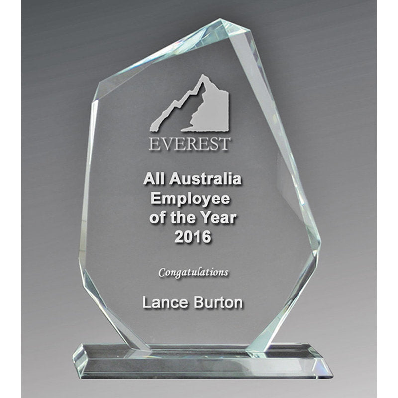 This award is part of the 2025 Evaton Range, exclusively at Brighton Trophy Centre. Colour: Clear. Material: Glass. Height: 190.0mm. Perfect for celebrating achievements in Glass events. Engraving available – contact us to personalise your award.