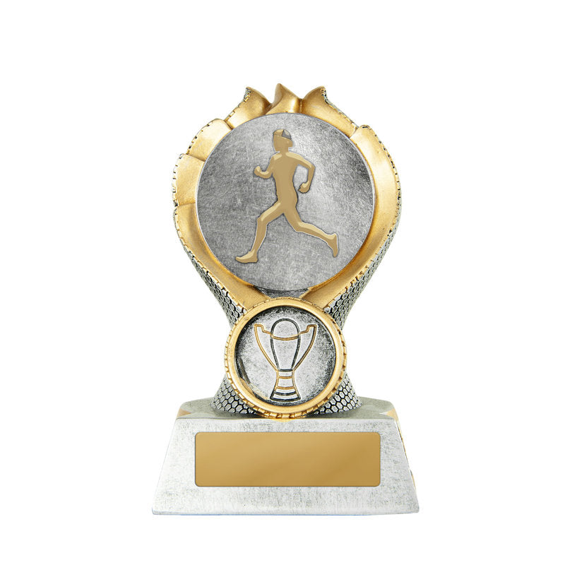 This award is part of the 2025 Evaton Range, exclusively at Brighton Trophy Centre. Colour: Silver-Gold. Material: Resin. Centre Holder: 50/25. Height: 130.0mm. Perfect for celebrating achievements in events. Engraving available – contact us to personalise your award.