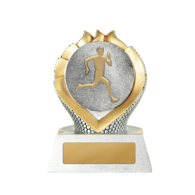 This award is part of the 2025 Evaton Range, exclusively at Brighton Trophy Centre. Colour: Silver-Gold. Material: Resin. Centre Holder: 50/25. Height: 130.0mm. Perfect for celebrating achievements in events. Engraving available – contact us to personalise your award.