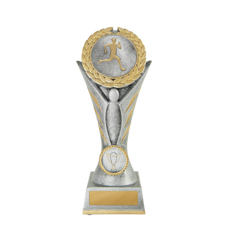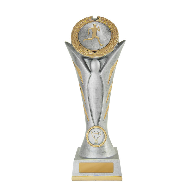 This award is part of the 2025 Evaton Range, exclusively at Brighton Trophy Centre. Colour: Silver-Gold. Material: Resin. Centre Holder: 50/25. Height: 225.0mm. Perfect for celebrating achievements in events. Engraving available – contact us to personalise your award.