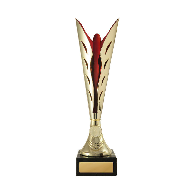 This award is part of the 2025 Evaton Range, exclusively at Brighton Trophy Centre. Colour: Gold-Red. Material: Plastic-Marble. Centre Holder: 25. Height: 300.0mm. Perfect for celebrating achievements in Plastic Cups events. Engraving available – contact us to personalise your award.