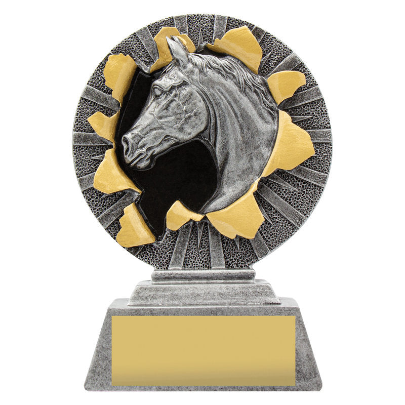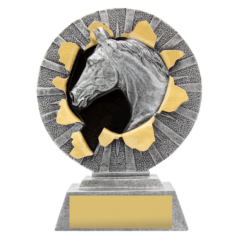 The Xplode Series features a dynamic design that highlights your sport or activity. Horse trophies in 3 sizes present a generic award option well suited to various events and activities. Finished in classic antique silver.