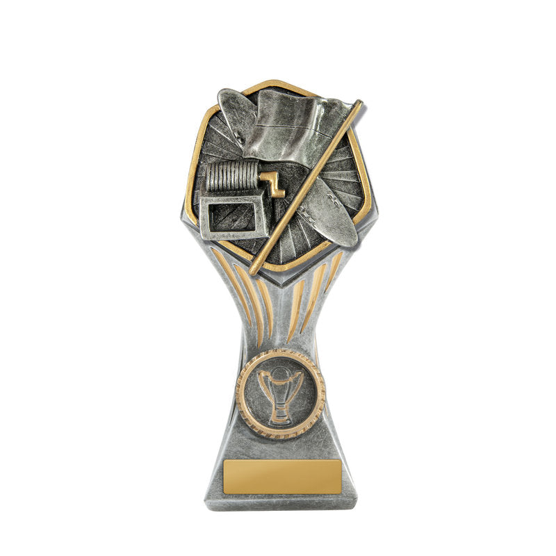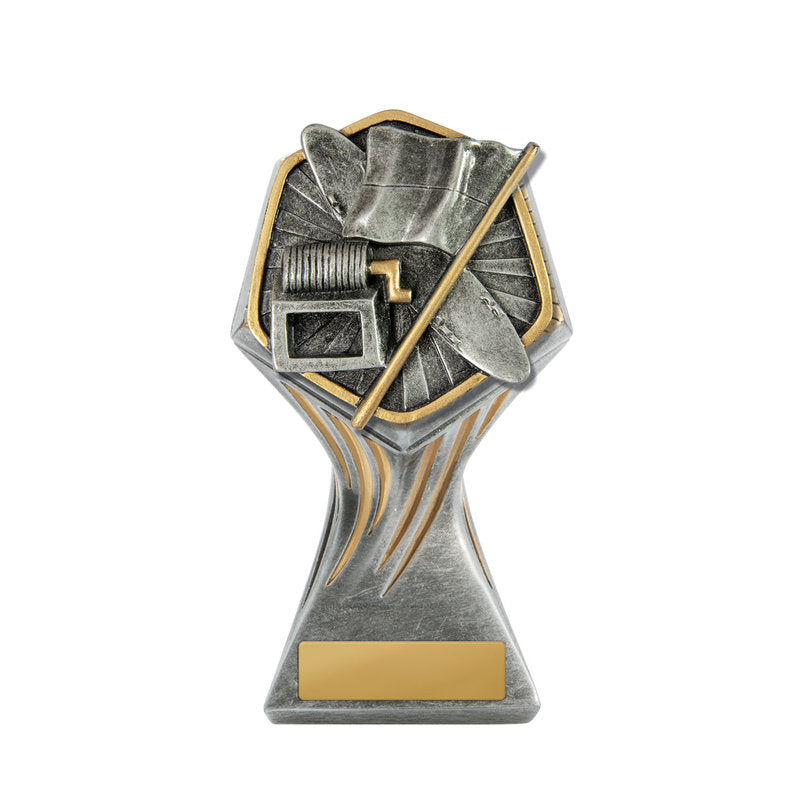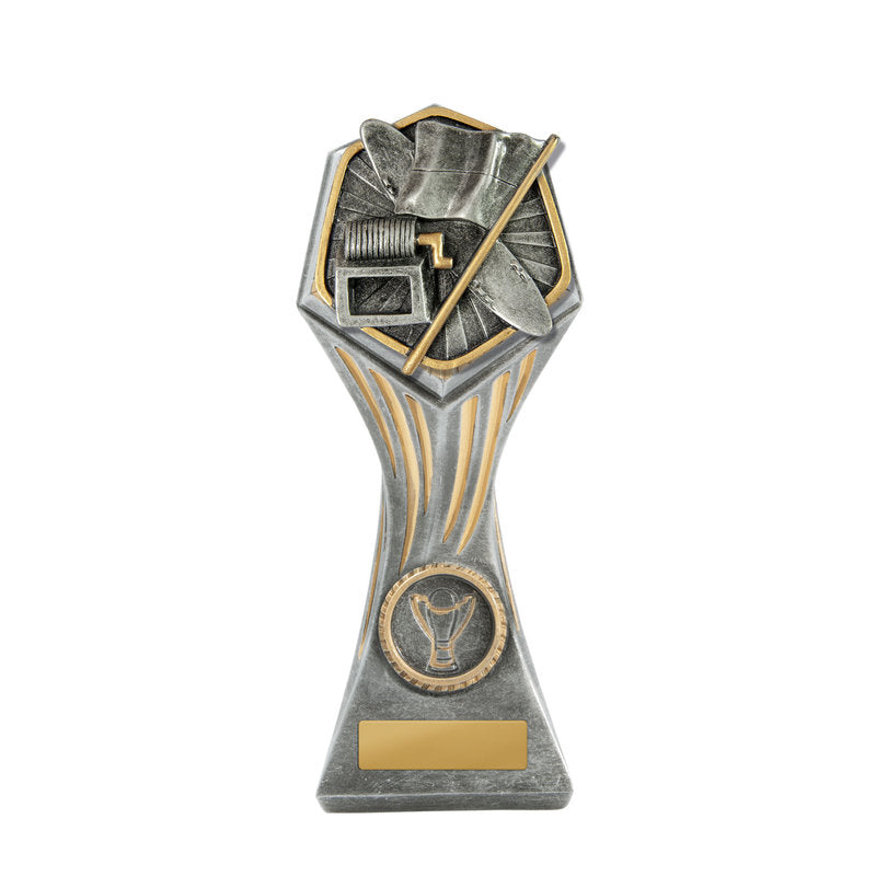 This award is part of the 2025 Evaton Range, exclusively at Brighton Trophy Centre. Colour: Silver-Gold. Material: Resin. Centre Holder: 25. Height: 225.0mm. Perfect for celebrating achievements in events. Engraving available – contact us to personalise your award.