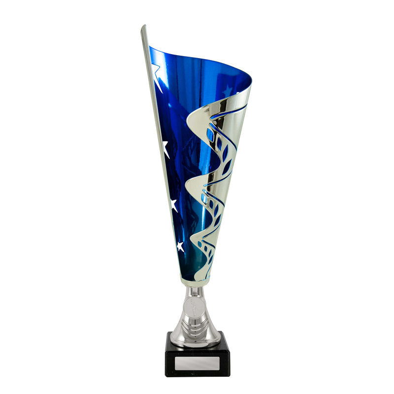 This award is part of the 2025 Evaton Range, exclusively at Brighton Trophy Centre. Colour: Silver-Blue. Material: Metal-Plastic-Marble. Centre Holder: 25. Height: 310.0mm. Perfect for celebrating achievements in Metal Cups events. Engraving available – contact us to personalise your award.