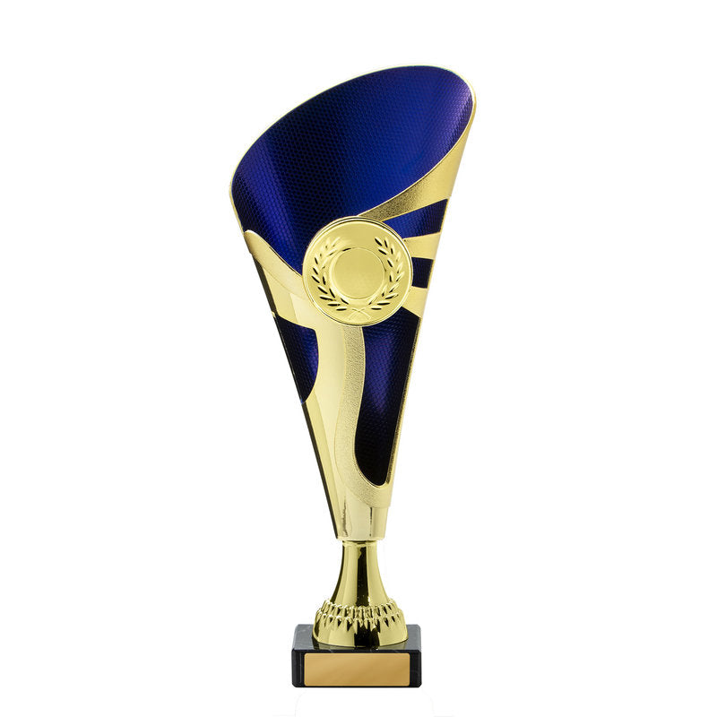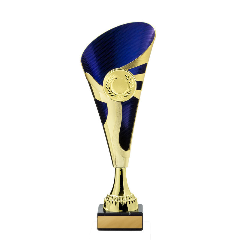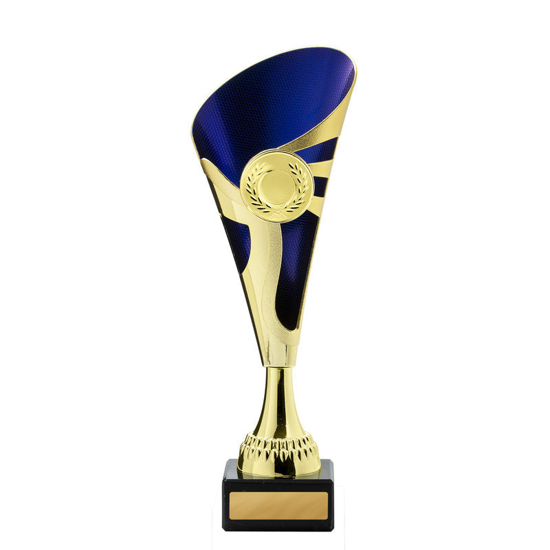 This award is part of the 2025 Evaton Range, exclusively at Brighton Trophy Centre. Colour: Gold-Blue. Material: Plastic-Marble. Centre Holder: 25. Height: 305.0mm. Perfect for celebrating achievements in Plastic Cups events. Engraving available – contact us to personalise your award.
