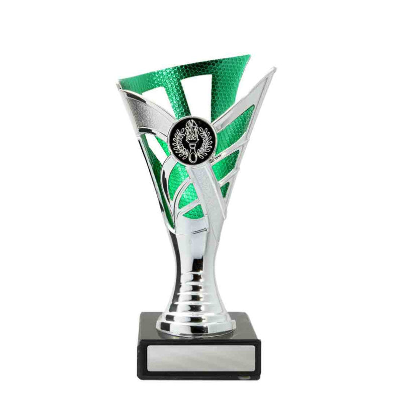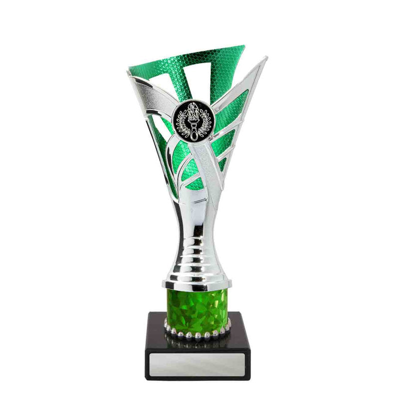 This award is part of the 2025 Evaton Range, exclusively at Brighton Trophy Centre. Colour: Silver-Green. Material: Plastic-Marble. Centre Holder: 25. Height: 175.0mm. Perfect for celebrating achievements in Plastic Cups events. Engraving available – contact us to personalise your award.