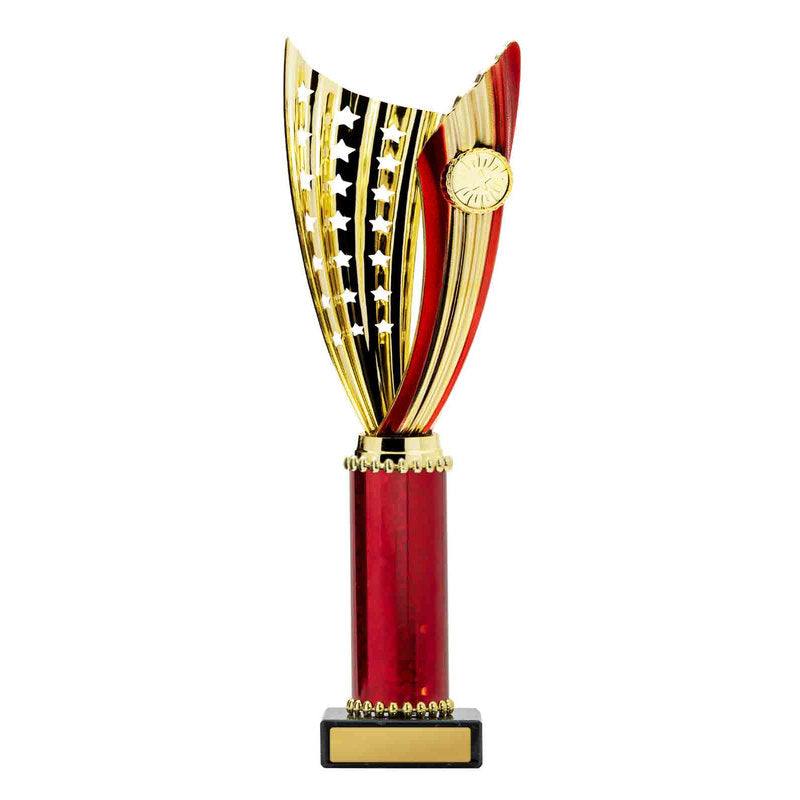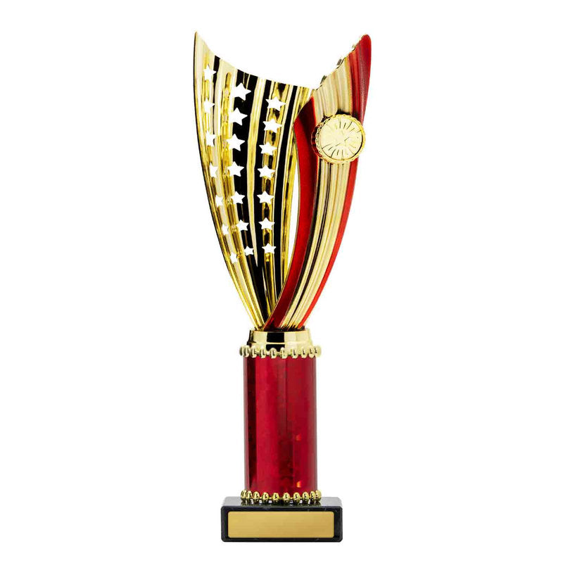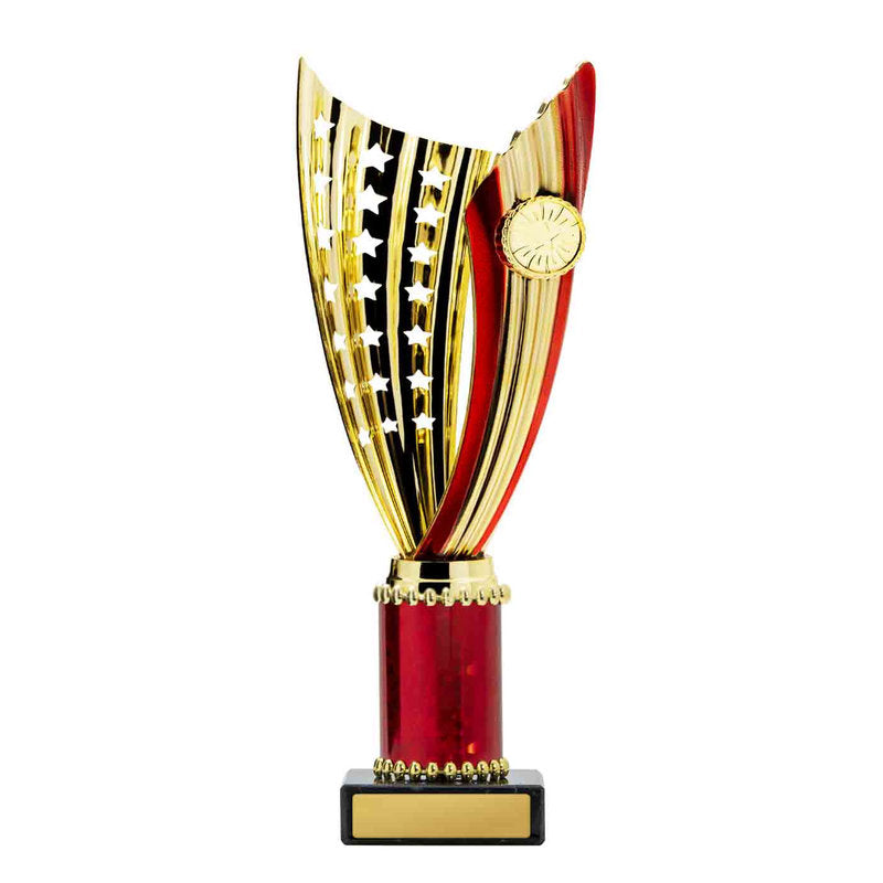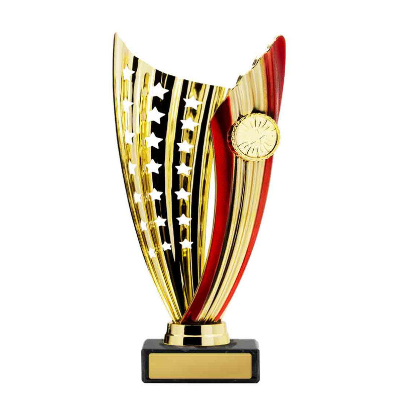 This award is part of the 2025 Evaton Range, exclusively at Brighton Trophy Centre. Colour: Gold-Red. Material: Plastic-Marble. Centre Holder: 25. Height: 210.0mm. Perfect for celebrating achievements in Plastic Cups events. Engraving available – contact us to personalise your award.