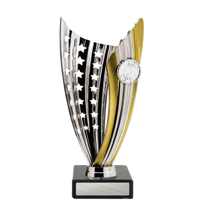 This award is part of the 2025 Evaton Range, exclusively at Brighton Trophy Centre. Colour: Silver-Gold. Material: Plastic-Marble. Centre Holder: 25. Height: 210.0mm. Perfect for celebrating achievements in Plastic Cups events. Engraving available – contact us to personalise your award.