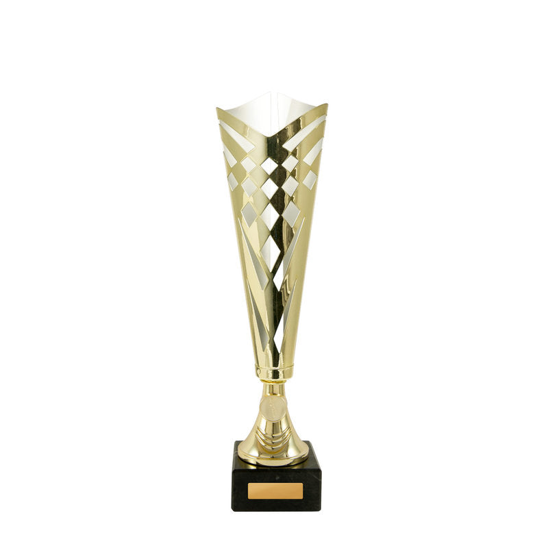 This award is part of the 2025 Evaton Range, exclusively at Brighton Trophy Centre. Colour: Gold-Silver. Material: Metal-Plastic-Marble. Centre Holder: 25. Height: 330.0mm. Perfect for celebrating achievements in Metal Cups events. Engraving available – contact us to personalise your award.