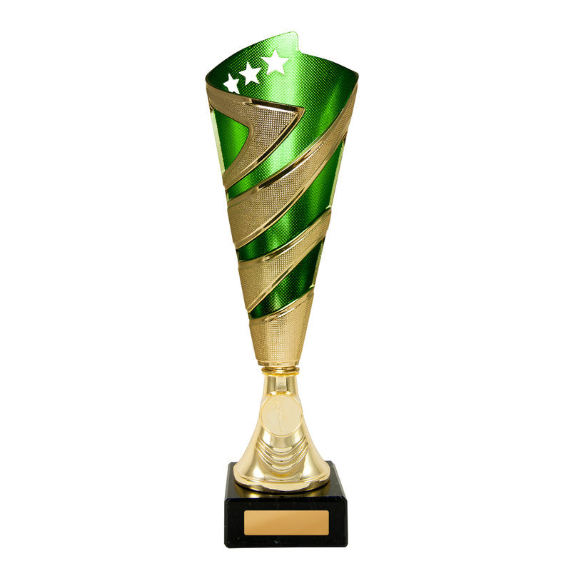 This award is part of the 2025 Evaton Range, exclusively at Brighton Trophy Centre. Colour: Gold-Green. Material: Plastic-Marble. Centre Holder: 25. Height: 295.0mm. Perfect for celebrating achievements in Plastic Cups events. Engraving available – contact us to personalise your award.