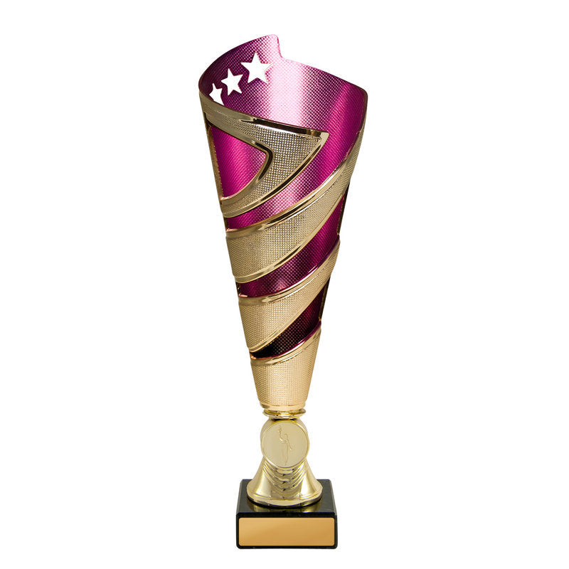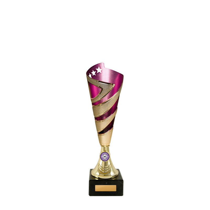 This award is part of the 2025 Evaton Range, exclusively at Brighton Trophy Centre. Colour: Gold-Purple. Material: Plastic-Marble. Centre Holder: 25. Height: 295.0mm. Perfect for celebrating achievements in Plastic Cups events. Engraving available – contact us to personalise your award.