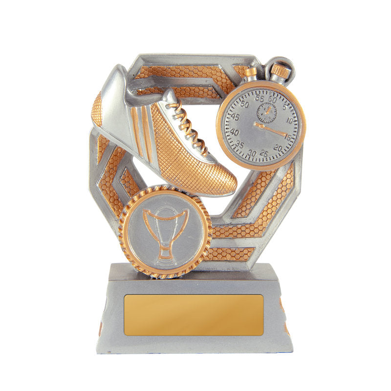 This award is part of the 2025 Evaton Range, exclusively at Brighton Trophy Centre. Colour: Silver-Gold. Material: Resin. Centre Holder: 25. Height: 100.0mm. Perfect for celebrating achievements in events. Engraving available – contact us to personalise your award.