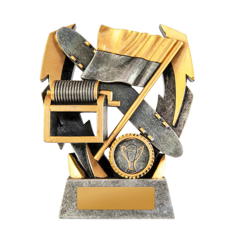 This award is part of the 2025 Evaton Range, exclusively at Brighton Trophy Centre. Colour: Silver-Gold. Material: Resin. Centre Holder: 25. Height: 100.0mm. Perfect for celebrating achievements in events. Engraving available – contact us to personalise your award.