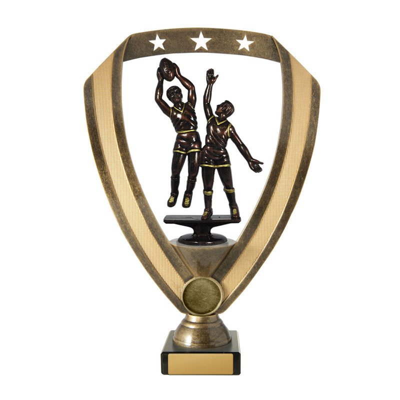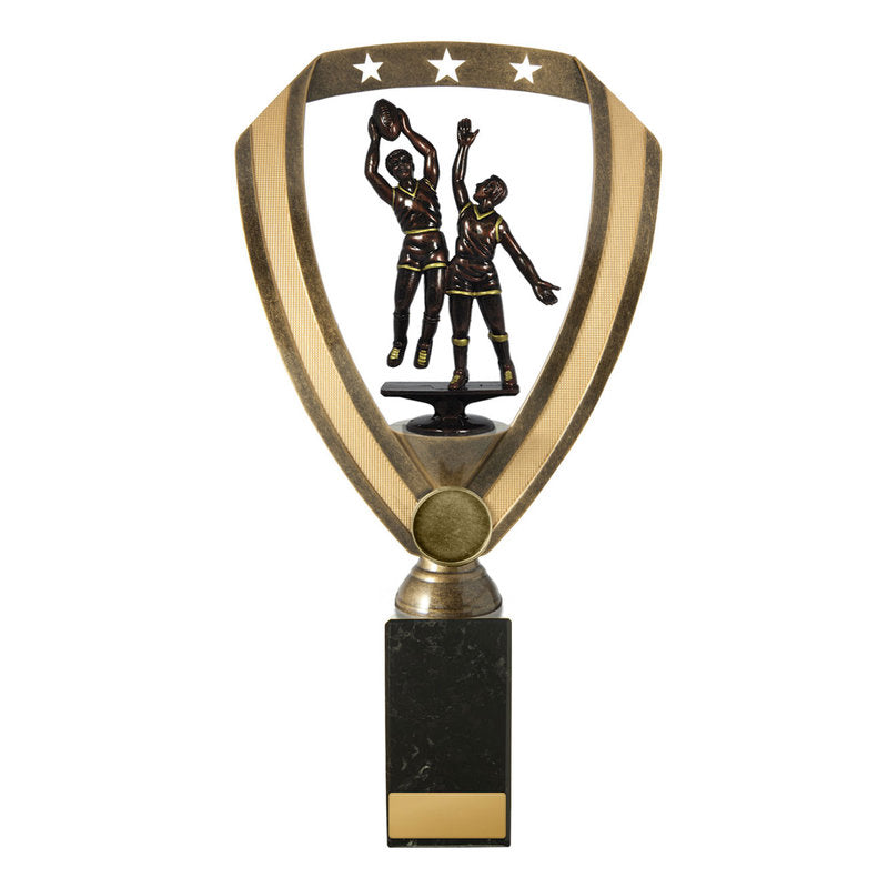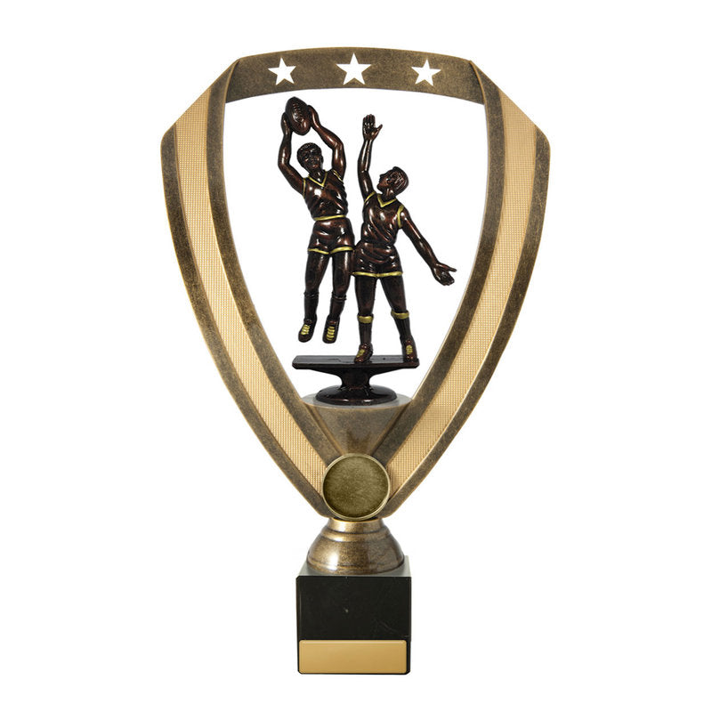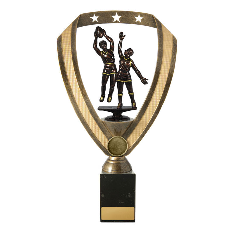 This award is part of the 2025 Evaton Range, exclusively at Brighton Trophy Centre. Colour: Antique Gold-Black. Material: Plastic-Marble. Centre Holder: 25. Height: 240.0mm. Perfect for celebrating achievements in Traditional Trophies events. Engraving available – contact us to personalise your award.