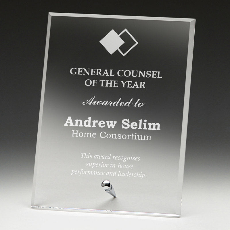 The Prestige Plaque series offers classic design of awards with elegant metal stand - acrylic is perfect medium to highlight your award requirements.