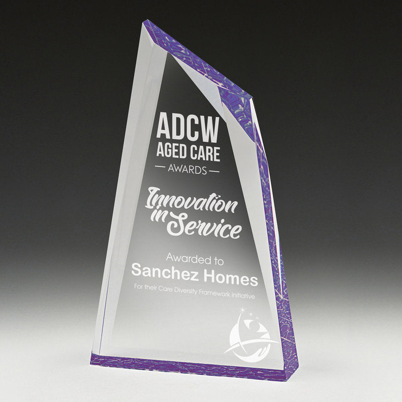 The Charger series of acrylic awards available in various colours and sizes - feature distinctive peak shape design symbolic of high achievement.