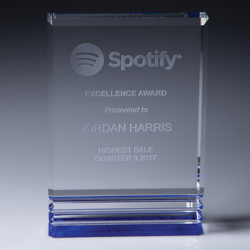 The Blue Pulse design features bold detailing and vibrant blue highlights that may be perfect for your event or organisation. Acrylic provides for rich and clear engraving representation.