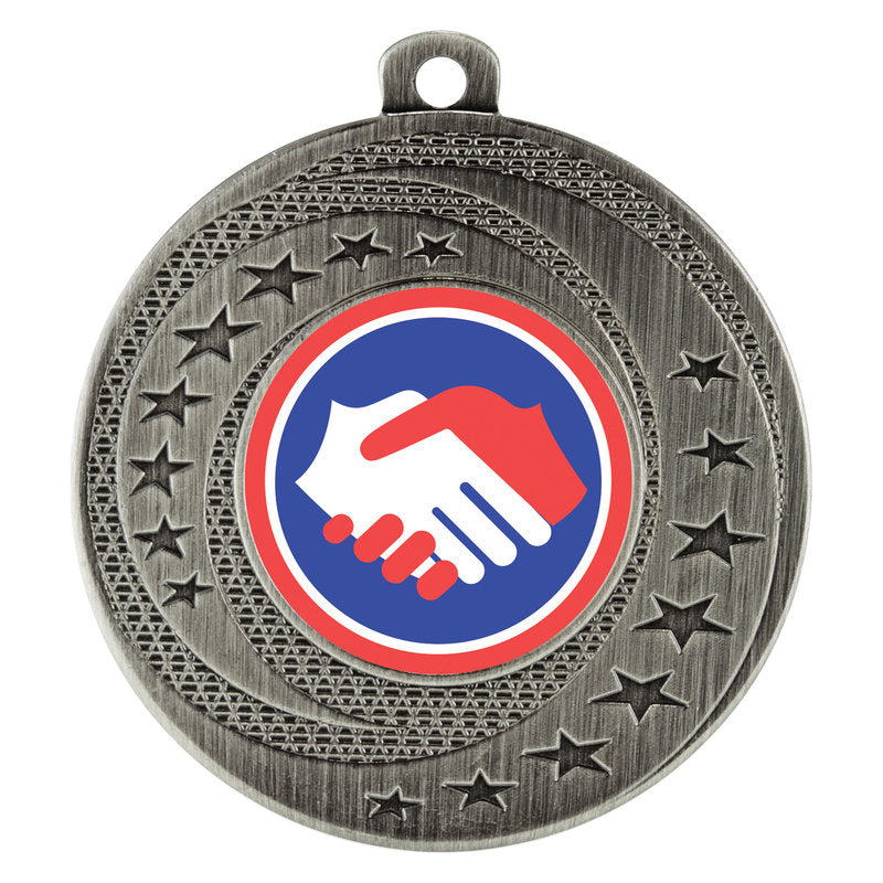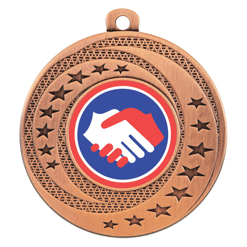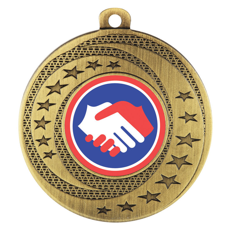 Wayfare Medals represent incredible value with appealing stars and multi-textured design. Show off your custom logo or choose insert from range available.