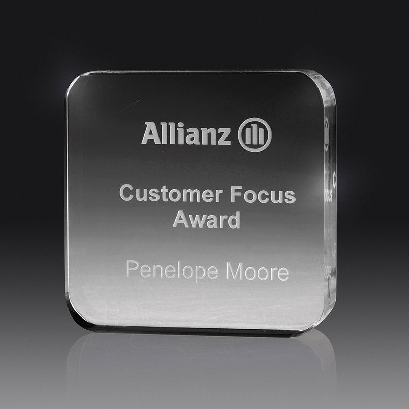 This acrylic paperweight offer a design potentially suitable for a range of recognition purposes. An affordable option, the Paperweight Award can be given to recognise team or individual success or be given out for gift and promotional reasons. Acrylic will allow precision engraving for text and logo requirements.