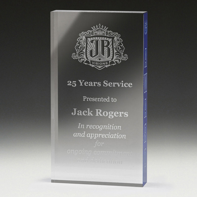 The Blue Palisade presents a nice broad area for your decoration requirements - the innovative blue side panel allows for an additional engraving area.