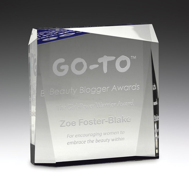Prism Acrylic series offer a distinctive cut design to show off your personalisation requirements. Choose between blue, red or green awards. Supplied in presentation gift box.