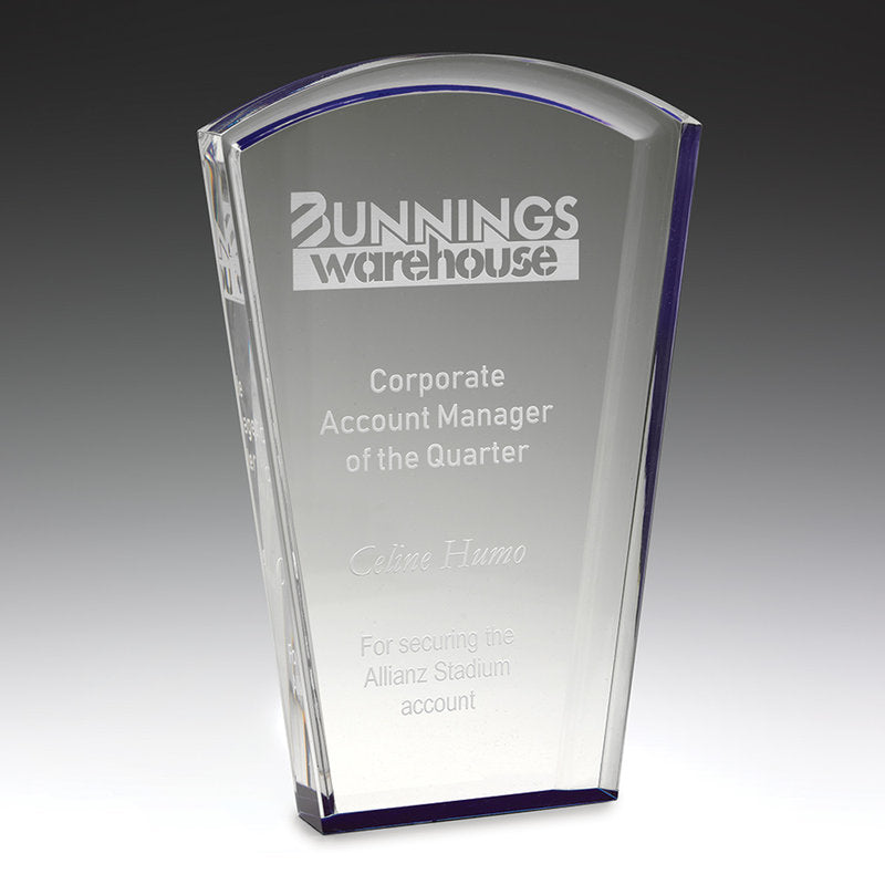 The 'Solar' series of acrylic awards present multi-coloured options - a self-standing design ideal for personalisation. Select blue, red or green for your event or presentation. Acrylic supplied in presentation gift box.
