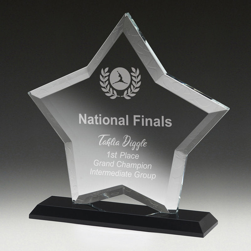 The Crystal Black Ice Series represents great value with an innovative Star inspired design over 2 great sizes. The awards offer plenty of space for engraving and feature a unique rippled pattern along the edges of the star shape. Supplied in Gift Box.