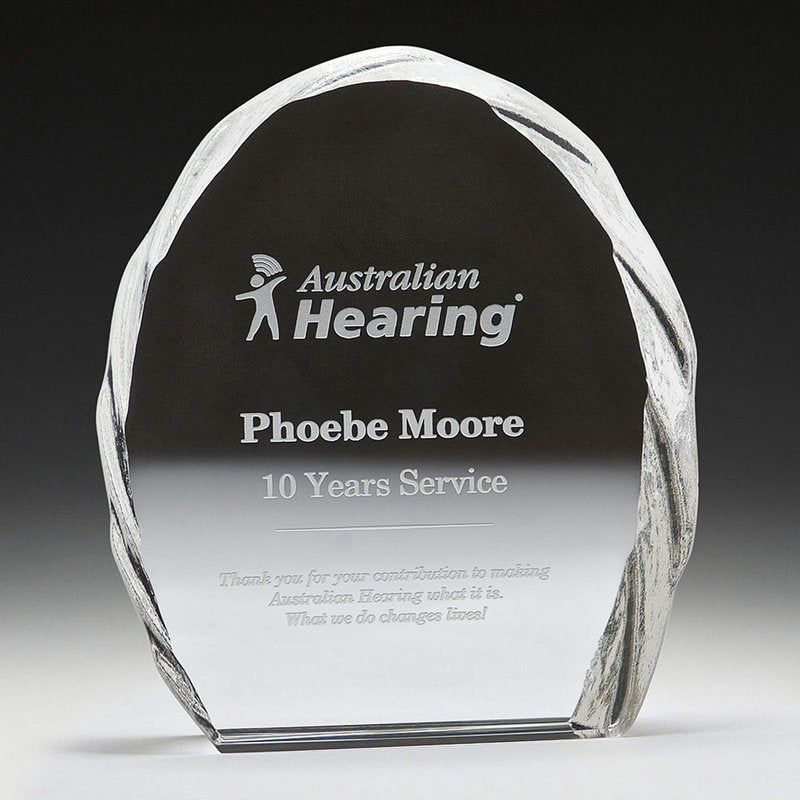 Effective corporate award with ample space for personalisation. Available in 3 sizes and supplied in presentation gift box. The 'Tundra' features dramatic frozen like design.