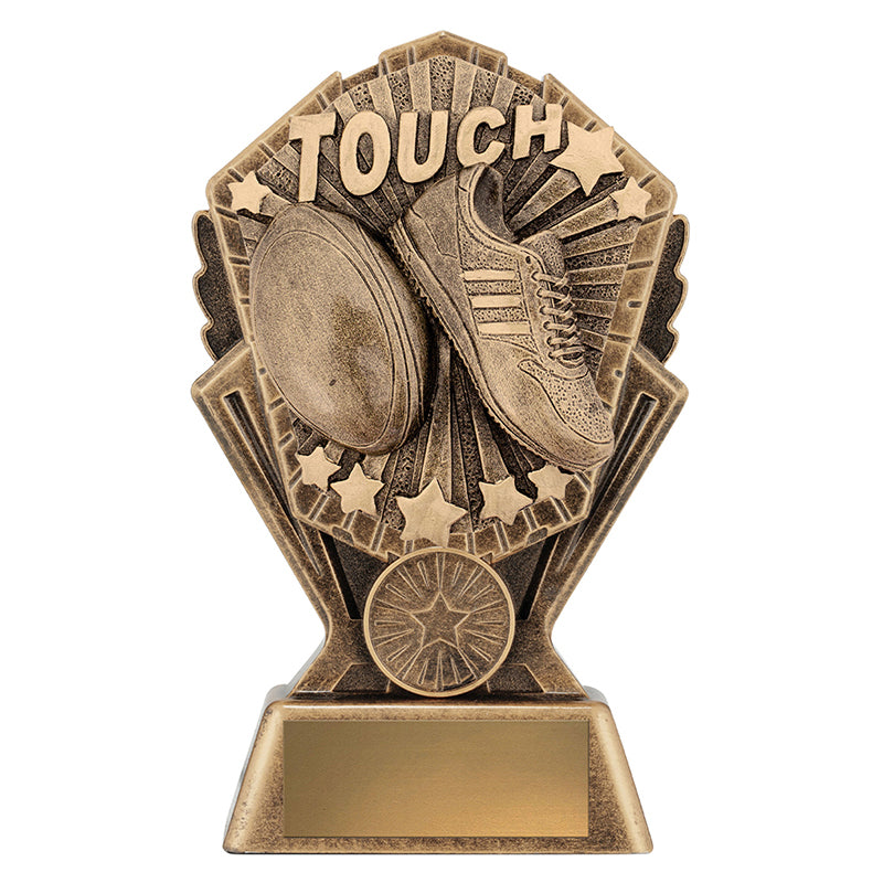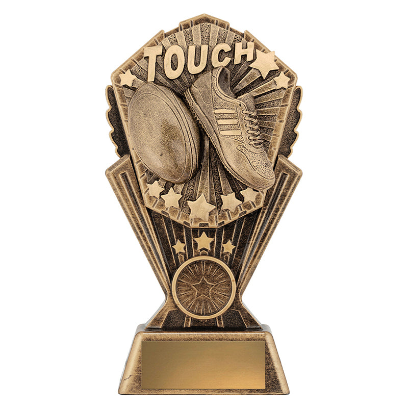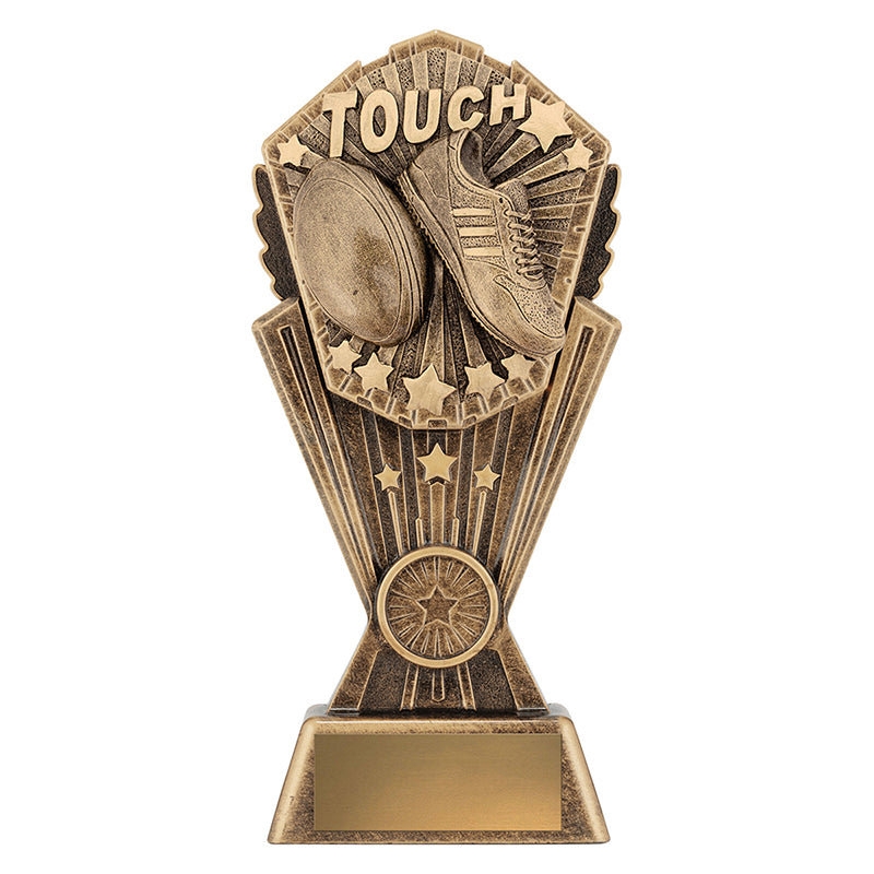 Brilliant series of 'Cosmos' trophies for Touch Football. Trophy series available in many different sports and activities. Available in 3 sizes with space for custom insert if required.