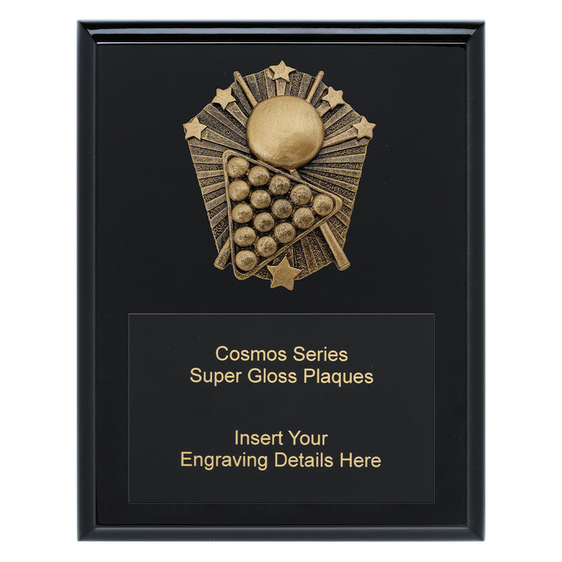 Range of super gloss plaques in classic black with brilliant Cosmos fronts and matte black engraving. Choose plaque - available in 3 sizes - to suit your sport or activity.
