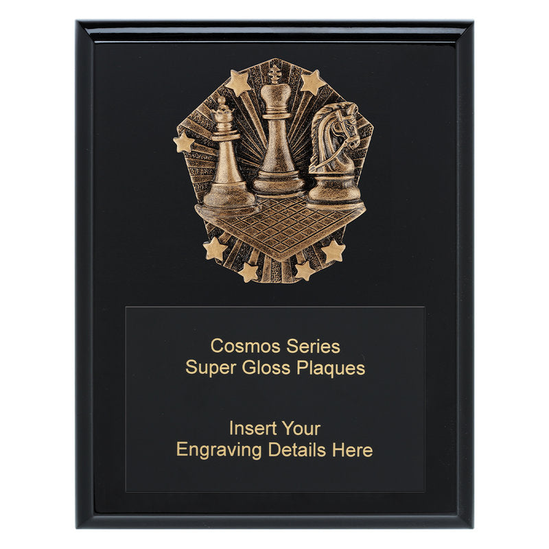 Range of super gloss plaques in classic black with brilliant Cosmos fronts and matte black engraving. Choose plaque - available in 3 sizes - to suit your sport or activity.