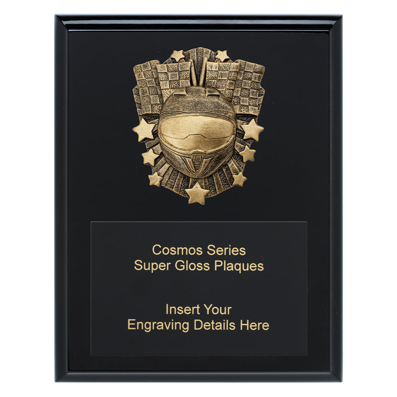 Range of super gloss plaques in classic black with brilliant Cosmos fronts and matte black engraving. Choose plaque - available in 3 sizes - to suit your sport or activity.