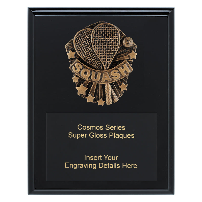 Range of super gloss plaques in classic black with brilliant Cosmos fronts and matte black engraving. Choose plaque - available in 3 sizes - to suit your sport or activity.