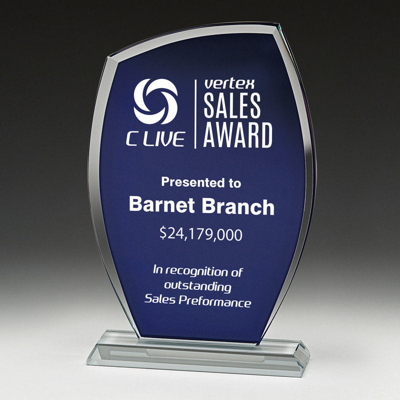 Sophisticated range of crystal awards with striking blue panelling effect that allows for precision engraving to elevate your awards.