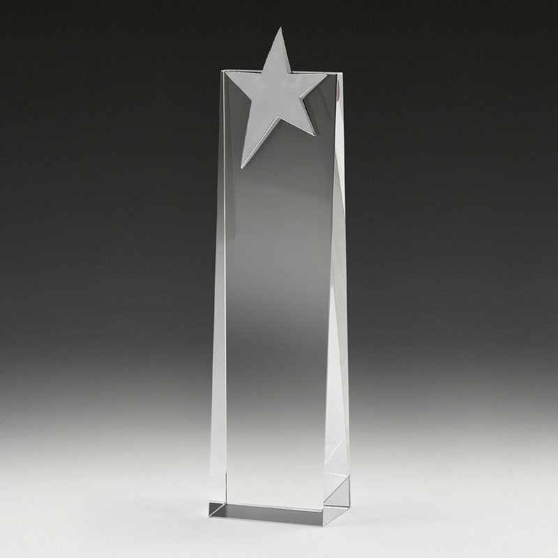 Top of the line prestige awards to celebrate the high achievements of your award recipients. Perfect for elite business and corporate awards. Fantastic design that features crystal and metal stars.