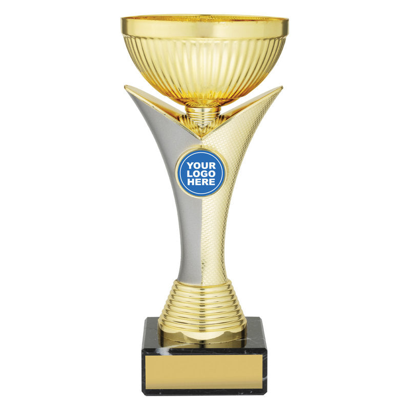 Venus Cups offer a stylish cup trophy with metal bowl and brilliant gold and silver colour design. Available in 3 sizes.