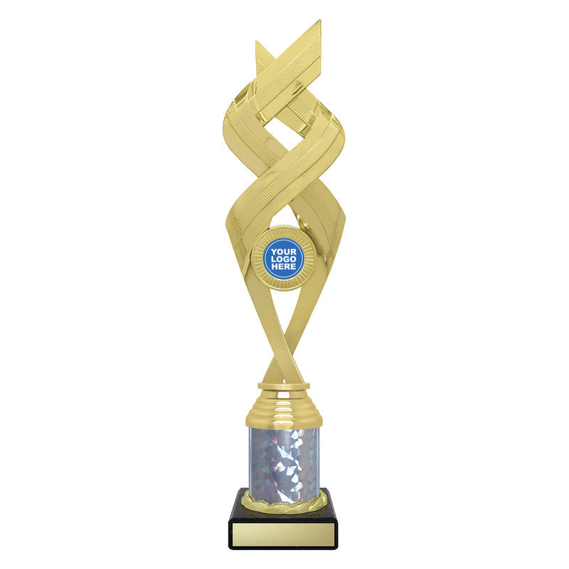 Stylish Jetstream series of holder trophies feature a complex design of intertwining elements and a central spot for your custom logo. Available in different colours.
