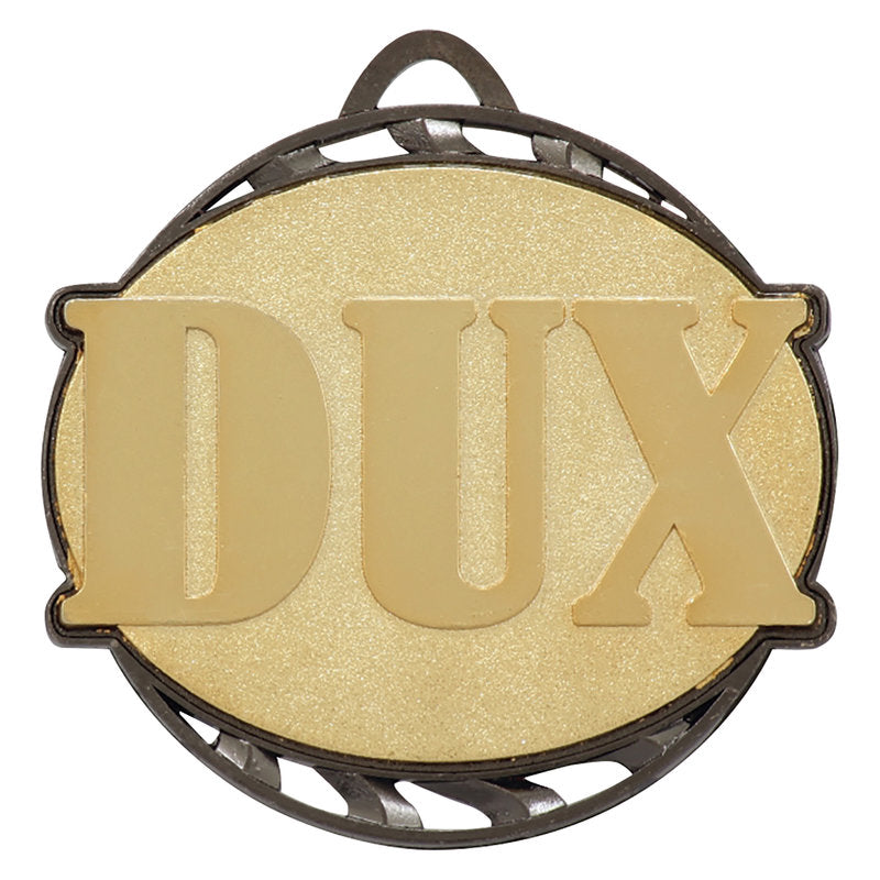 Gold medal for the dux recipient in your class or group. The Vortex Series of medals feature bright coloured elements on an antique whirl vortex design. Back of the medal features a rectangle panel for your engraving plate. Medal box available for this uniquely shaped medal.
