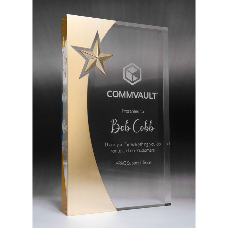 This award is part of the 2025 Evaton Range, exclusively at Brighton Trophy Centre. Colour: Clear-Gold. Material: Acrylic. Height: 200.0mm. Perfect for celebrating achievements in Acrylic events. Engraving available – contact us to personalise your award.