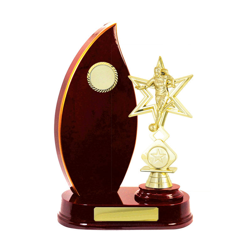 This award is part of the 2025 Evaton Range, exclusively at Brighton Trophy Centre. Colour: Cherry-Gold. Material: Plastic-Timber. Centre Holder: 25. Height: 260.0mm. Perfect for celebrating achievements in Timber Trophies events. Engraving available – contact us to personalise your award.