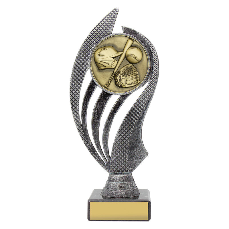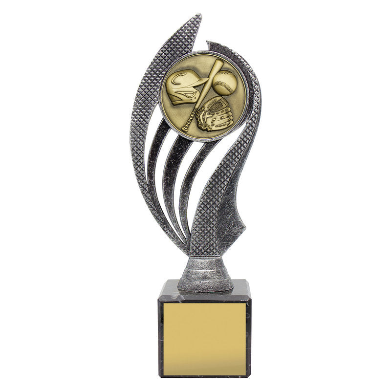 Husky series of trophies on premium black marble allows for different award options for your activity. Appealing antique silver and gold combination over number of sizes.