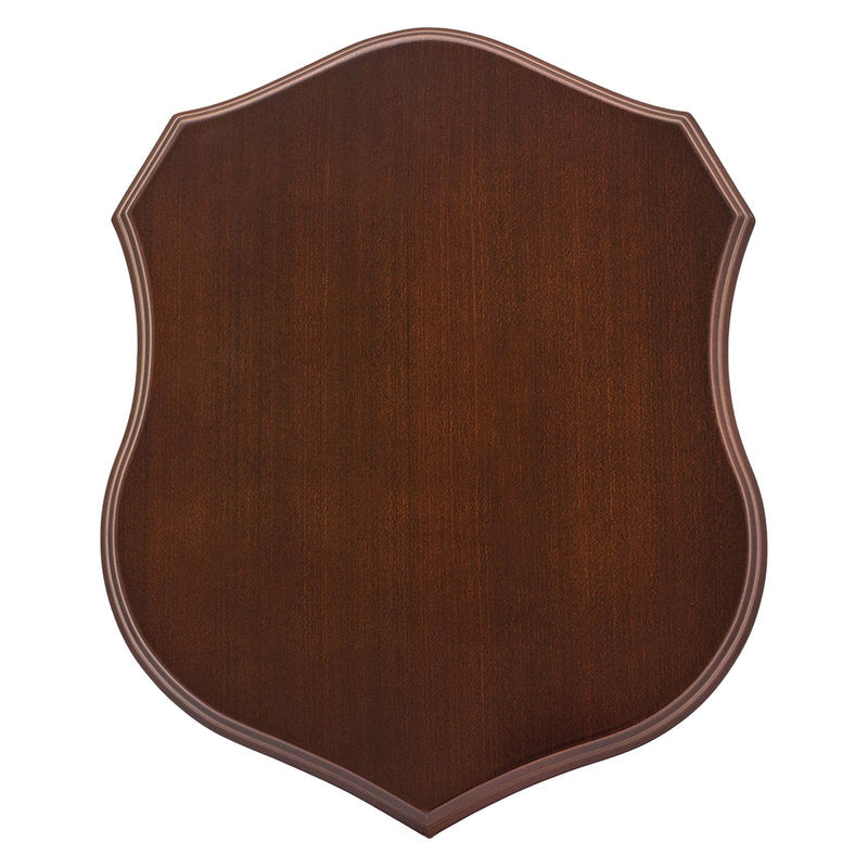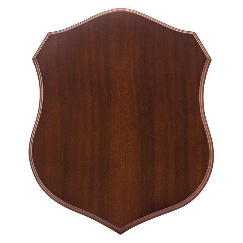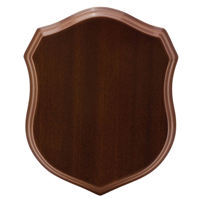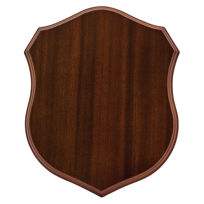 Classic series of timber shields in many sizes. 2 smaller sizes supplied with back-stand. All sizes fitted with hanging hole.