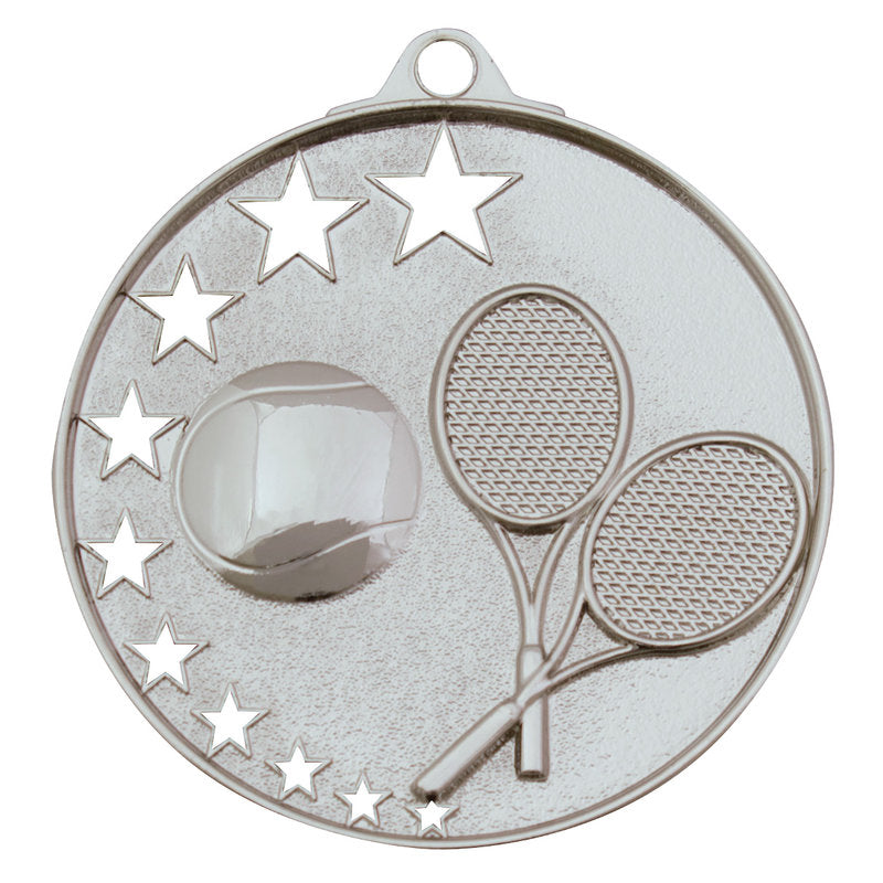 Bright gold, silver and bronze medals for Tennis. A popular medal series, the Star Series features a unique hollow multi-star design and extra thick edge. There is a rectangle panel on the back of each medal for your engraving. Ribbons available in all colours and plenty of medal boxes to suit.