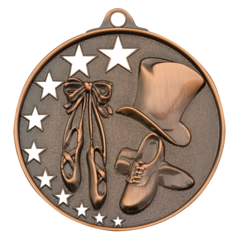 Bright gold, silver and bronze medals for Dance. A popular medal series, the Star Series features a unique hollow multi-star design and extra thick edge. There is a rectangle panel on the back of each medal for your engraving. Ribbons available in all colours and plenty of medal boxes to suit.