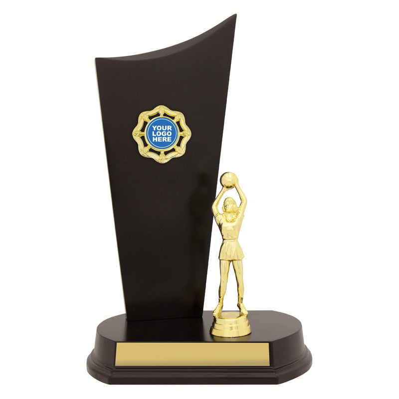 Striking series of timber wing based trophies - multiple sizes and space for your logo insert. Tops for all sports available.