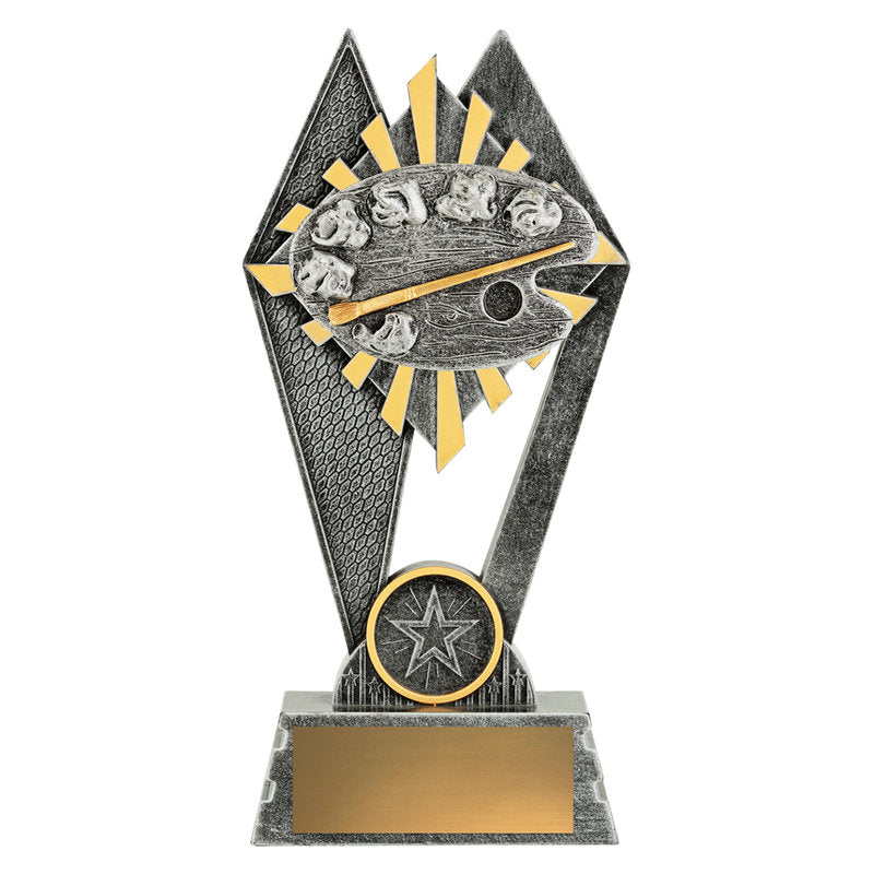 The Peak Series is an innovative trophy series offering super value for such an impressive size range. An elevated design that features an easel and brush against a vibrant sunray style background. Available in 3 sizes.