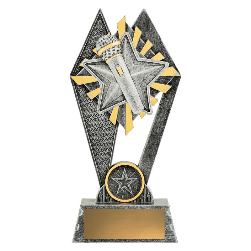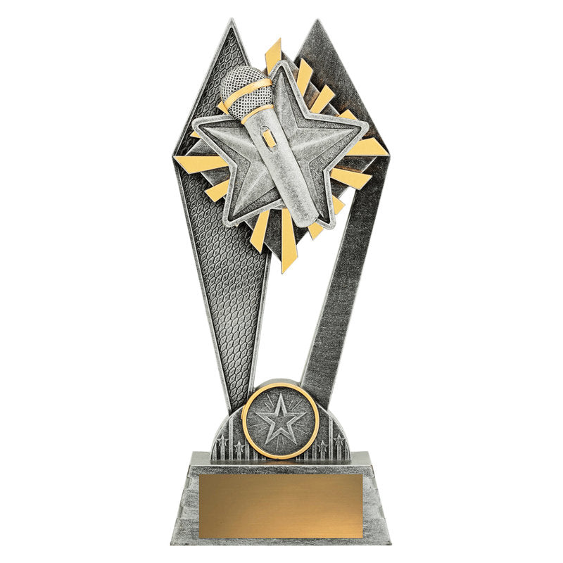 The Peak Series is an innovative trophy series offering super value for such an impressive size range. An elevated design that features a microphone theme can be used for public speaking, debating and other activities. Available in 3 sizes.